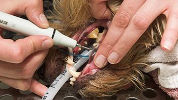 No dog will let people tinker around in his mouth with water and metal tools.